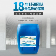 GUX-Z混凝土表面增強(qiáng)劑具有極低的表面張力,能快速滲透至混凝土內(nèi)部,與混凝土中水泥水化的副產(chǎn)物如氫氧化鈣發(fā)生二次反應(yīng),生成大量的二氧化硅凝膠,這些凝膠能堵塞混凝土內(nèi)部毛細(xì)微孔,從而增加混凝土表面的密實性,抗壓強(qiáng)度,硬度和耐磨性,一般能提高混凝土強(qiáng)度的15-30。