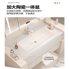 無縫盆巖板實(shí)木浴室柜